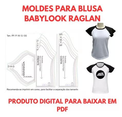 5 – Moldes em PDF e Corel para camiseta baby look para imprimir . Esse é um pacote de moldes de baby look , muito específico, trás somente baby look .