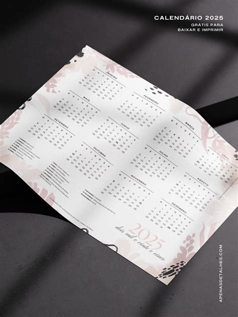 Calendário 2026 grátis para baixar e imprimir - Apenas Detalhes
