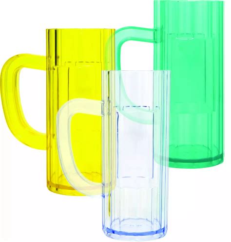 Caneca 400ml para chopp em acrílico. Transparente e com gel nas cores verde, vermelho, amarelo, preto, rosa e transparente. Resistente, bonita e uma ótima pedida para festas e eventos.