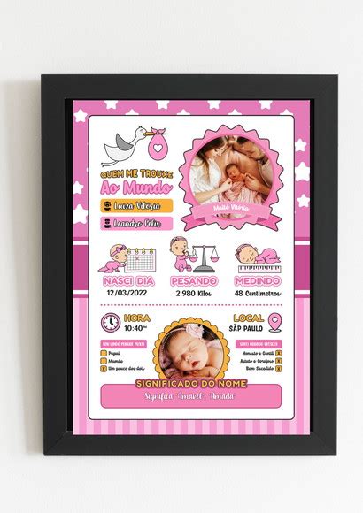 DownloadArte Digital Quadro com as Informações do Bebê | Elo7